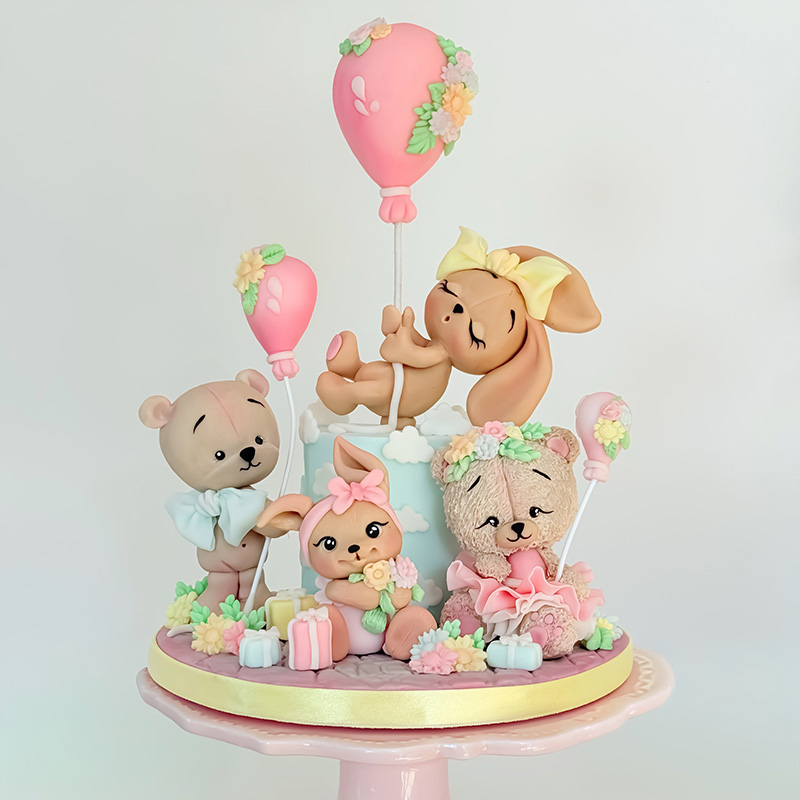 õpime voolima nelja looma kasutades selleks erinevaid tehnikaid. Loome tekstuure ja erinevaid näoilmeid. Teeme karvast loomakest, suuri efektseid lipse, satsiseelikuid ja armsaid disainelemente. Loome gravitatsiooni eiravat illusiooni voolides suure õhupalli küljes kiikuvat jänkubeebit. Õpime toonima ja looma terviklikku tordikompositsiooni.